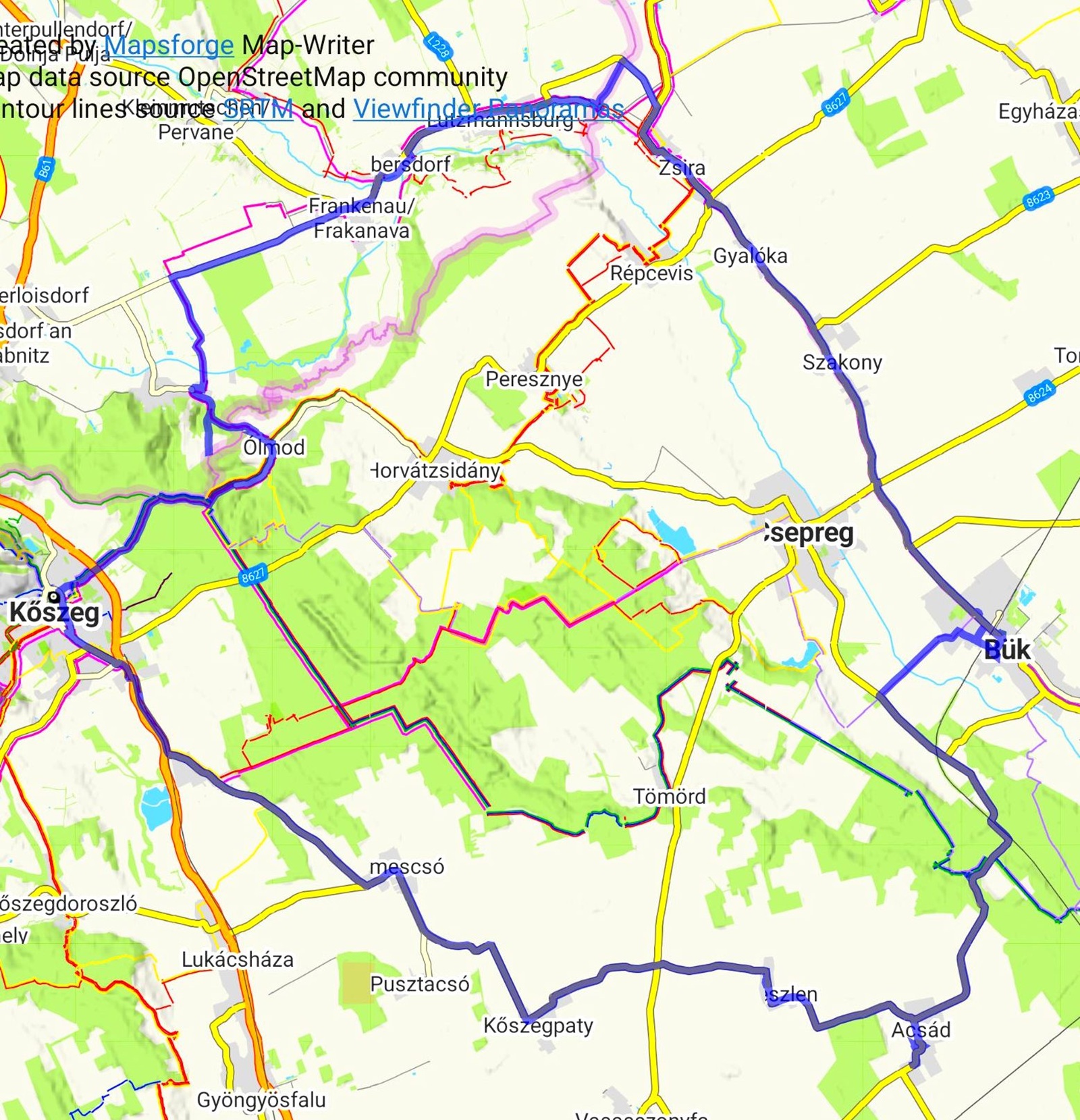 Az időjárás kegyes hozzánk, reggel kellemes kerékpározásra alkalmas idő fogadott minket, már-már majdnem hűvösnek volt mondható. 20°C körüli volt a hőmérséklet, még a széldzsekik is előkerültek. A tegnapi jól sikerült program után ma Kőszegtől keletre eső vidékkel szándékoztunk megismerkedni. A gyülekezésnél szépen alakult a létszám, a tegnapi hegyi terep után majdnem, hogy síkvidéki kerekezés várt ránk. A könnyebbség ellenére azért a megszokott két variáció került meghirdetésre, az alábbiak szerint:
